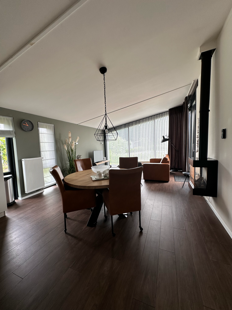 Binnen wacht een gezellige woon-/eetkamer op je, compleet met een comfortabele zithoek rondom een gashaard, een eethoek voor gezellige maaltijden samen en een scala aan entertainmentopties, waaronder een Blu-ray-speler, Bose soundbar, flatscreen-tv, dvd-speler en cd-speler. De open keuken is volledig uitgerust met moderne apparatuur, waaronder een Quooker, vaatwasser, combimagnetron, koelkast met vriesvak, waterkoker, Nespresso koffiemachine en een gasplaat met vijf pitten, zodat je gemakkelijk je favoriete maaltijden kunt bereiden. De badkamer is een ware oase van ontspanning, met een ligbad, stoomdouche en dubbele wastafel, perfect om de dag mee af te sluiten! En voor de ultieme ontspanning is er zelfs een sauna/ wellnessruimte beschikbaar!