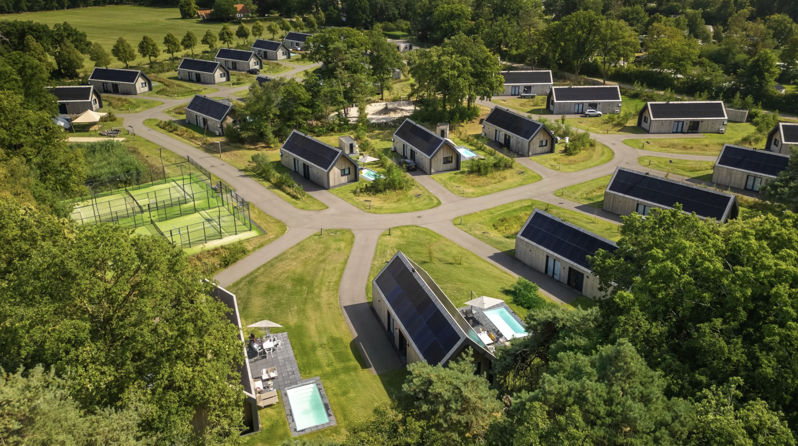 De Weelderik is een baanbrekend park in Europa, volledig zelfvoorzienend en gericht op duurzaamheid. Hier produceert elk huis meer energie dan het verbruikt. Water wordt gezuiverd met een milieuvriendelijk helofytenfilter en de airco schakelt automatisch uit zodra je de deuren opent en de frisse natuur naar binnen laat. De enige aansluiting die ze hebben? Internet, waarmee je eenvoudig je hele vakantie kunt beheren. Dit is toch te gek?! Bij De Weelderik vind je tal van faciliteiten om zowel sociale momenten te delen als je terug te trekken. Geniet van een multicourt, padelbaan, sportveld, bootcampfaciliteiten en gezellige picknickruimtes, perfect voor kinderen om te spelen. Er is simpelweg geen tijd voor verveling! Met een privé zwembad, Finse sauna, vuurplaats en persoonlijke aandacht creëren ze een kleinschalige en intieme sfeer in dit geweldige duurzame resort. Kom en ontdek de perfecte mix van luxe, comfort en natuur. Boek nu en ervaar het zelf!De Weelderik biedt je de perfecte ontsnapping naar luxe, natuur en duurzaamheid. In dit innovatieve park ervaar je niet alleen comfort en rust, maar ook de trots van een zelfvoorzienende omgeving die de toekomst van vakantieparken vertegenwoordigt. Geniet van de eigen luxe voorzieningen zoals privézwembaden, een sauna en een buitenkeuken, terwijl je tegelijkertijd kunt ontspannen in de prachtige, groene natuur. Of je nu samen met vrienden of familie bent, De Weelderik zorgt ervoor dat je vakantie alles heeft wat je nodig hebt. Kom tot rust in een park dat de natuur omarmt en duurzaamheid hoog in het vaandel heeft staan, en maak herinneringen die een leven lang meegaan.
