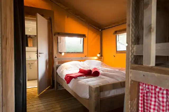De tenten van De Bonte Fries zijn van alle gemakken voorzien en bieden een unieke glampingervaring. Je kunt kiezen voor een Barntent met een eigen badkamer en ligbad in de tent of een Lodgetent met eigen badkamer en douche. Vanuit je tent heb je een prachtig uitzicht over het speelveld en de dierenweides, waardoor je altijd het gevoel hebt dat je midden in het boerderijleven zit. De combinatie van luxe verblijven, dieren, speelvoorzieningen en de natuurlijke omgeving maakt De Bonte Fries een ideale bestemming voor gezinnen die op zoek zijn naar een vakantie vol actie, ontspanning en dierbare herinneringen.