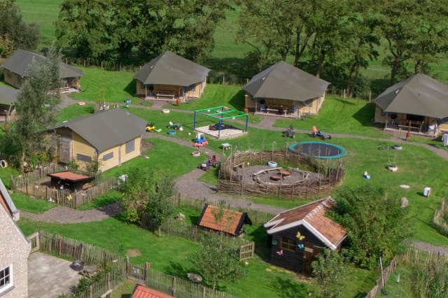 Bij De Bonte Fries staat alles in het teken van plezier, avontuur en dieren. Met maar liefst 10 luxe tenten op een ruim opgezet veld hebben de kinderen volop speelruimte, direct uitzicht op de skelters, trampolines, modderkeuken, zand- en waterspeelplaats, geheime hutten en nog veel meer. Het veld is deels gescheiden door een smalle vaart en volledig omheind, zodat de kleintjes veilig kunnen spelen.
