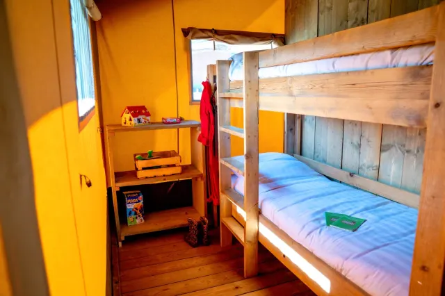 Naast het kennismaken met de dieren is er volop speelplezier op de boerderij. De 15 luxe tenten staan verspreid over twee veldjes met uitzicht op de speelvoorzieningen en het aangrenzende weiland. Kinderen kunnen zich uren vermaken met skelters, trampoline, vogelnestschommel, hutten bouwen, een zand- en waterplaats, voetballen of lekker spelen in de overdekte speelruimte. Ook het aangrenzende bos nodigt uit voor picknicks, speurtochten en ontdekkingstochten, waarbij je de pony’s kunt knuffelen of de koeien en kalfjes bewondert. En voor wie even helemaal wil ontspannen, is er het verwarmde buitenzwembad met zwembadbar, ideaal voor een verkoelende duik na een dag vol avontuur.