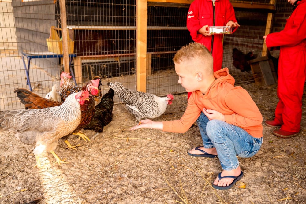 De boerderij is een waar paradijs voor dierenliefhebbers: naast de Brandrode runderen kom je hier Bonte Bentheimer landvarkens, schapen, pony’s, paarden, kippen, konijnen, katten en de vrolijke boerderijhond Sammie tegen. Kinderen kunnen helpen met voeren, de kudde controleren of hout kloven voor het kampvuur. Boerin Eva en boer Frank vertellen met veel passie over de dieren, de natuur en het zelfvoorzienende leven op de boerderij. Een ochtendrondje voeren is niet alleen leerzaam, maar ook hartstikke gezellig.
